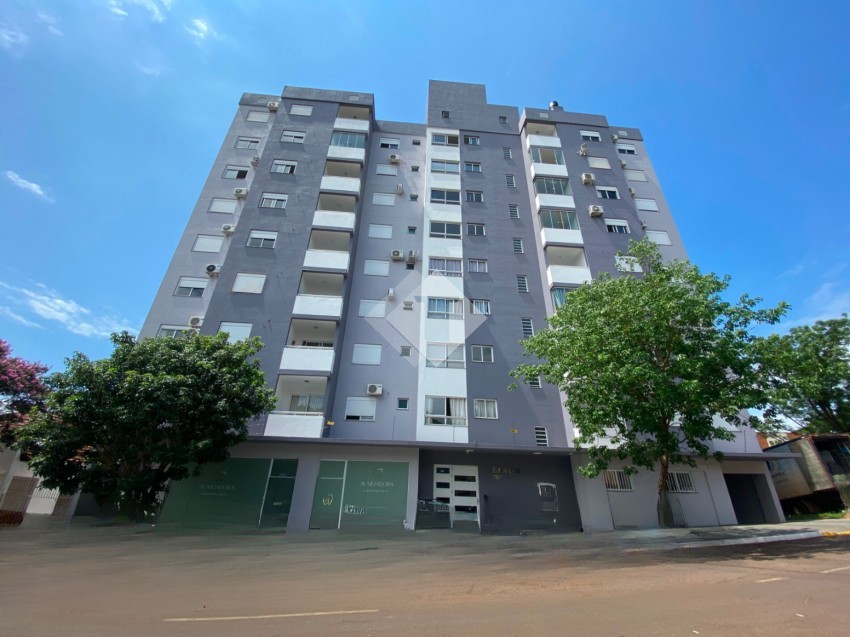 Apartamento com 02 dormitórios, sala, cozinha, banheiro social, sacada com churrasqueira, área de serviço e garagem para 01 carro.