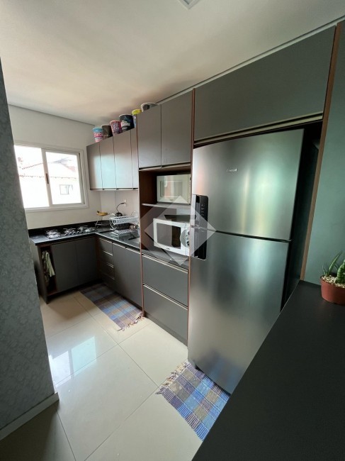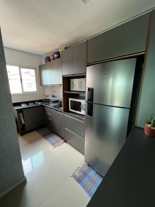 01 suíte + 01 dormitório, sala, cozinha, banheiro, área de serviço, sacada com churrasqueira e garagem para 01 carro.