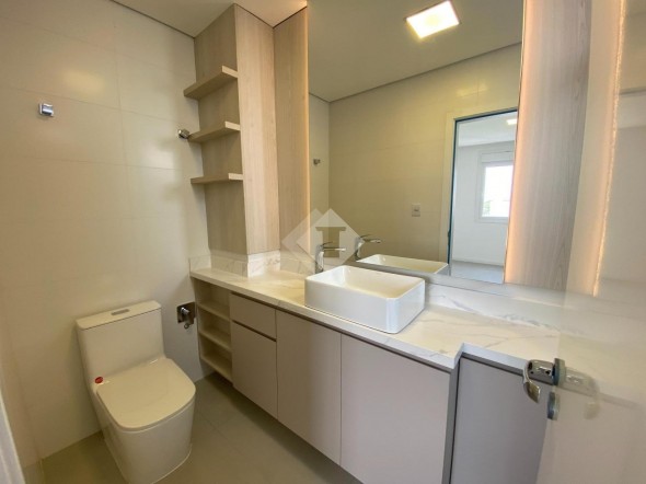 Composto por 03 dormitórios, sendo um deles uma suíte, ambos com persianas automaticas, sala de estar e jantar, cozinha sob medida, lavabo, banheiro social, 02 box de garagem.