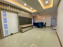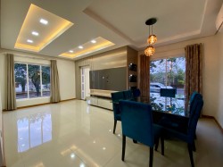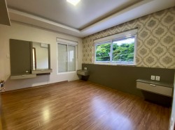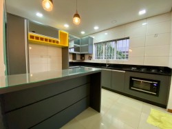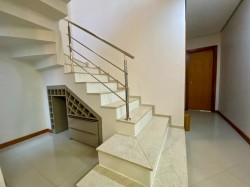Parte terrea ampla sala de estar e jantar semi-mobiliada painel para tv, um espaço para cervejeira e adega em baixo da escada e um lavabo;