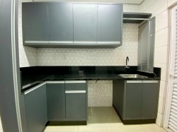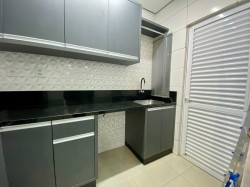 Cozinha sob-medida com torneira eletrica, espaço para maquina de lavar louças e filtro de agua, area de serviço mobiliada com espaço para maquina lava e seca;