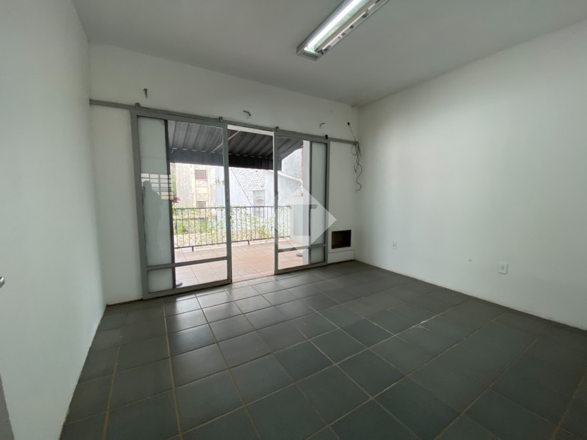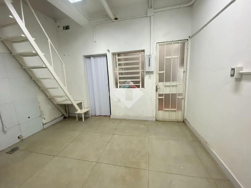 Espaço comercial com lavabo, recepção, amplo espaço, e no andar superior uma kitnet.