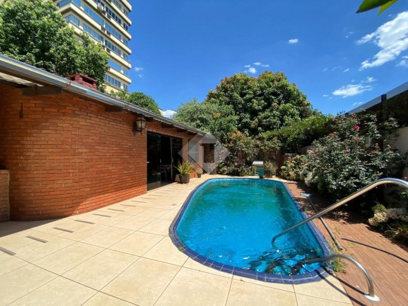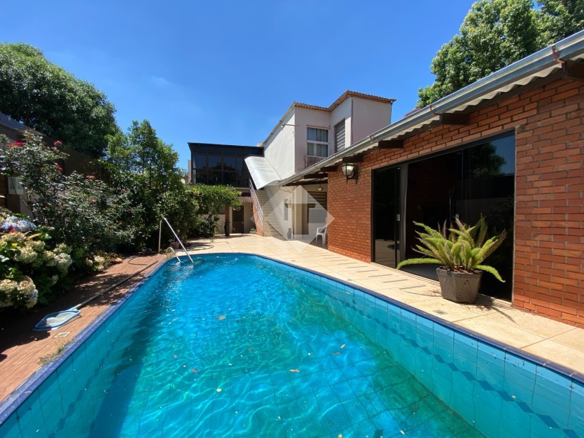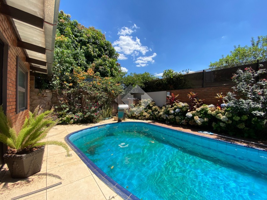 Pátio privativo com piscina aquecida por energia solar, para momentos de lazer e relaxamento.