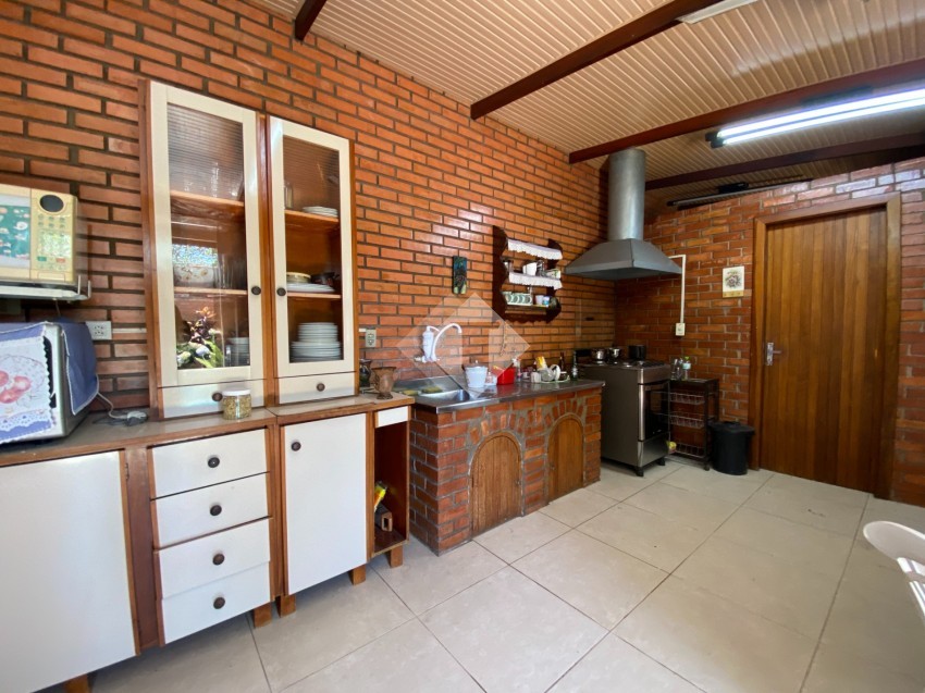 Quiosque com área gourmet, banheiro e espaço de serviço, perfeito para reuniões sociais e eventos.