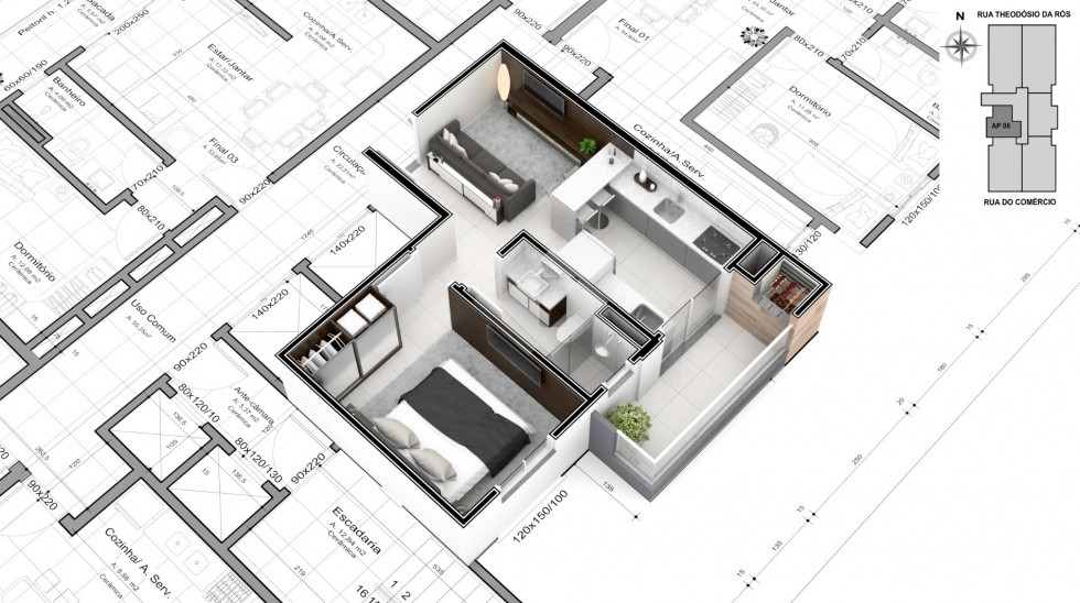 Apto com 01 dormitório, cozinha americana, sala 02 ambientes, banheiro social, área de serviço, sacada com churrasqueira e 01 vaga de garagem.