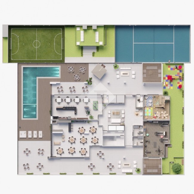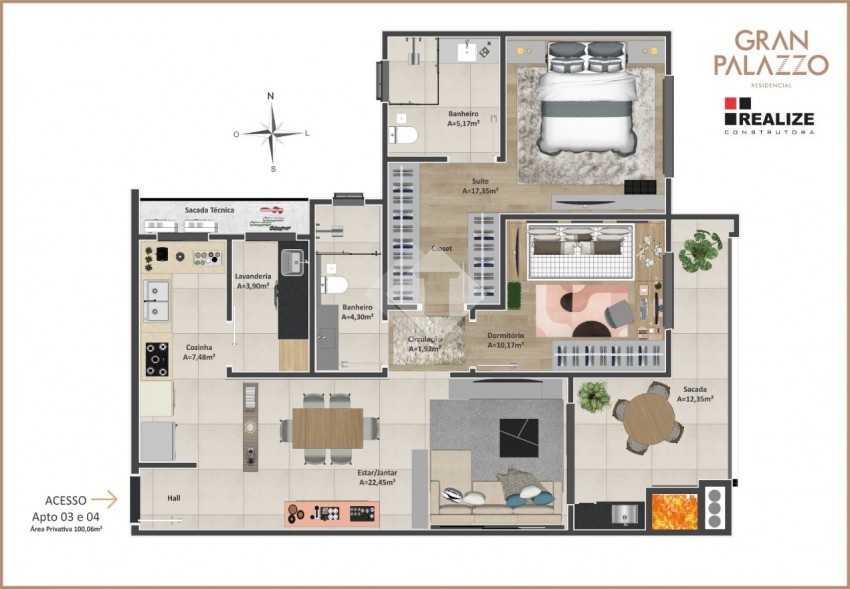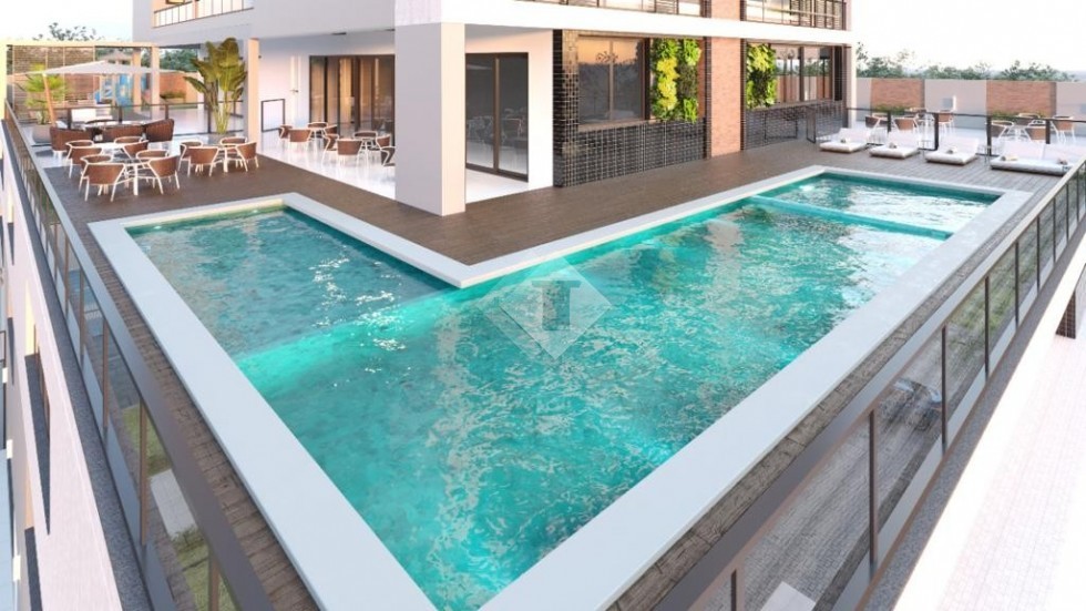 Área privativa de 100m², com terraço de 24m², mais duas vagas de garagem.