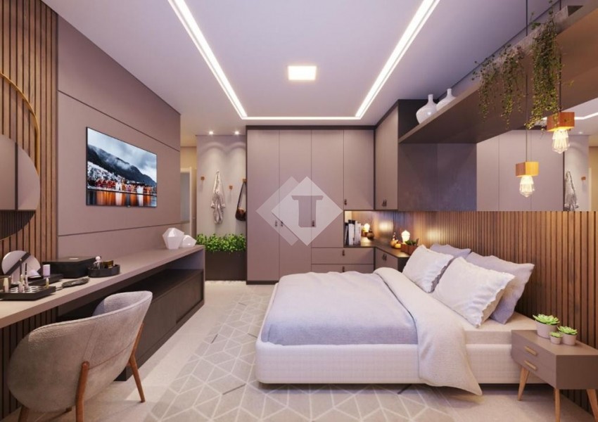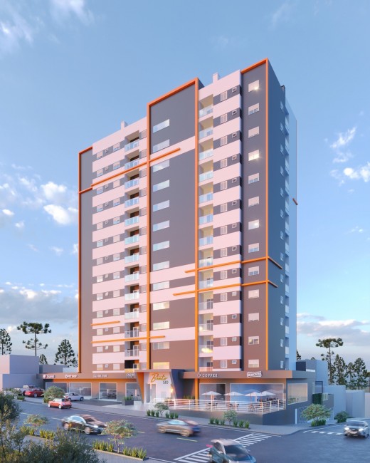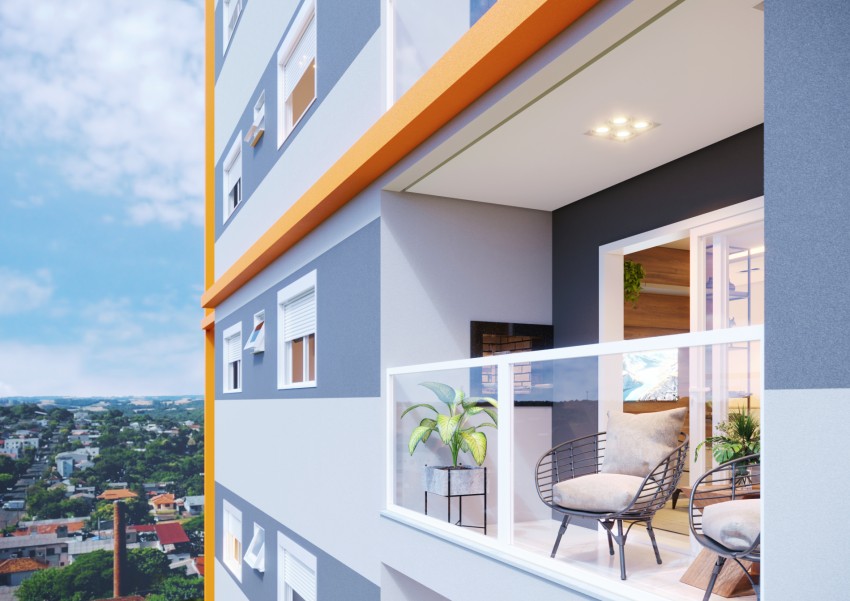 Apartamento com 02 dormitórios, sala e cozinha conceito aberto, banheiro social, churrasqueira e 02 vagas de garagem.