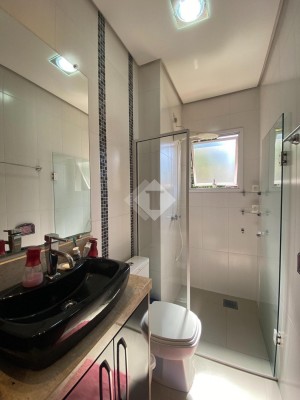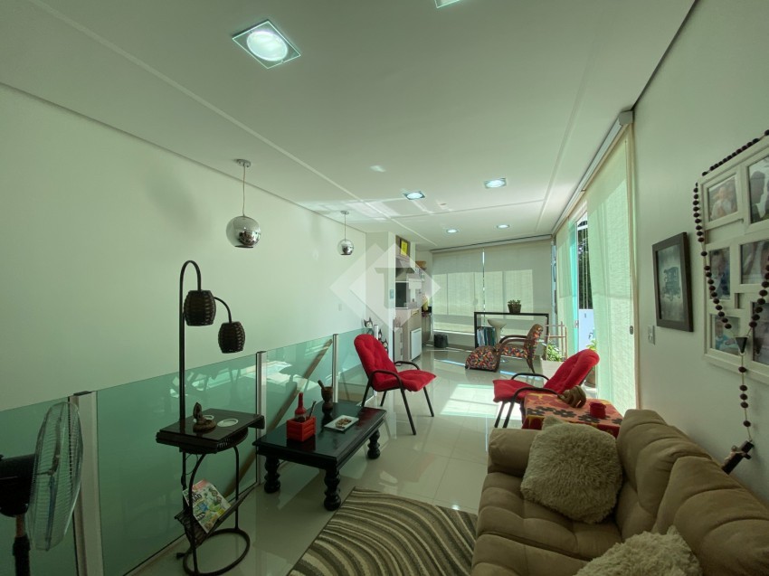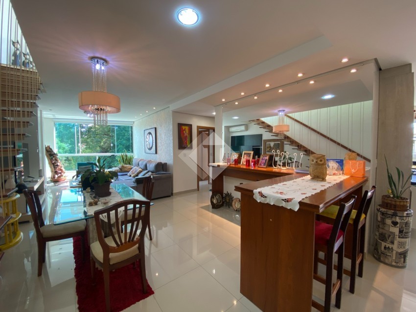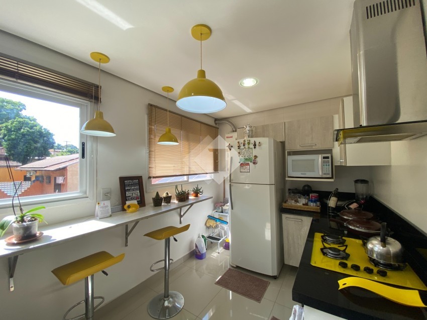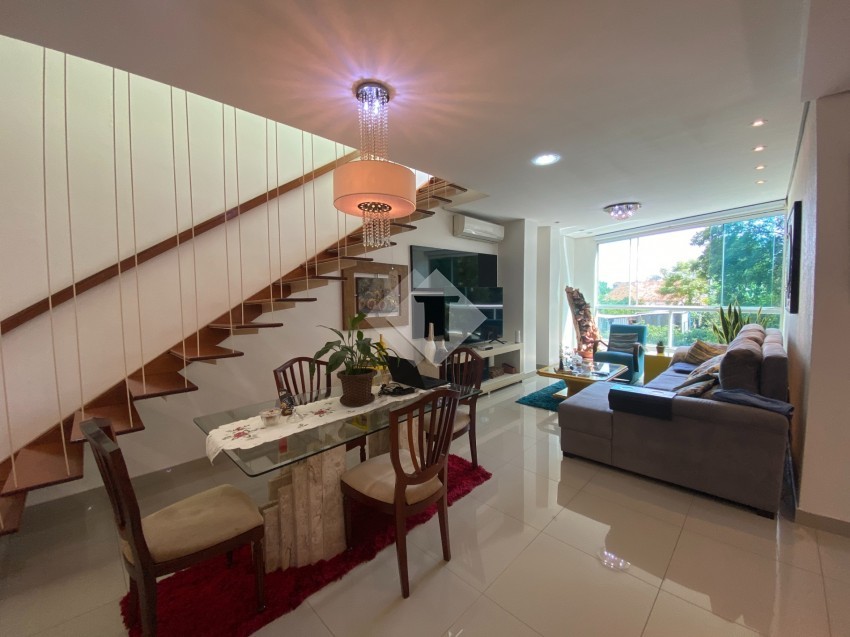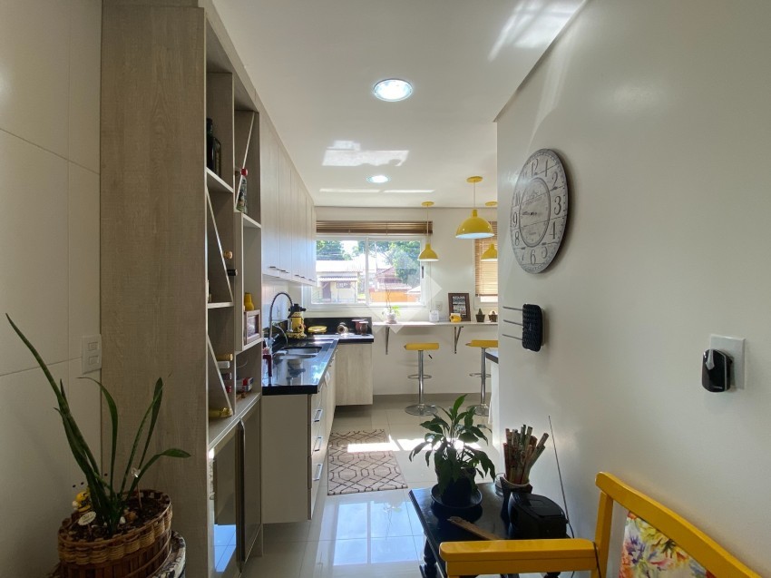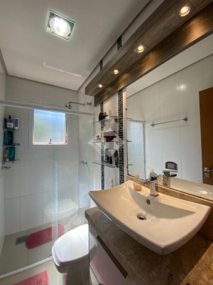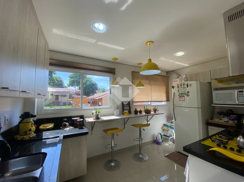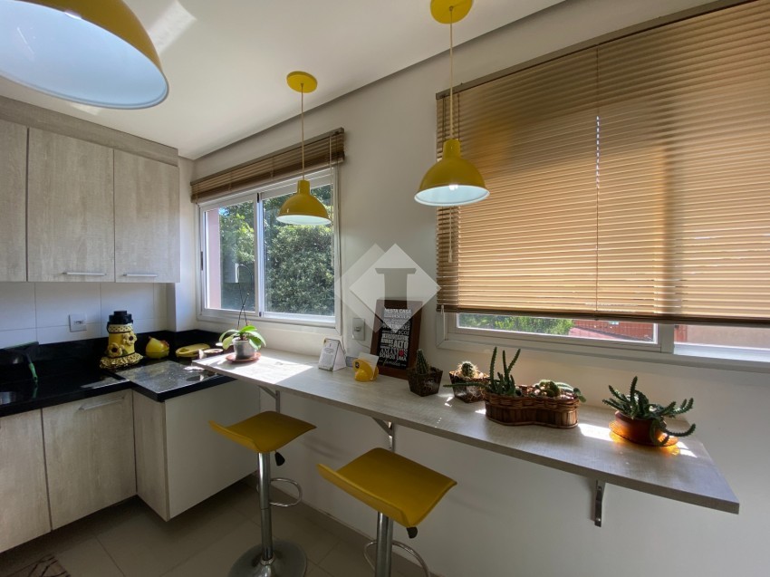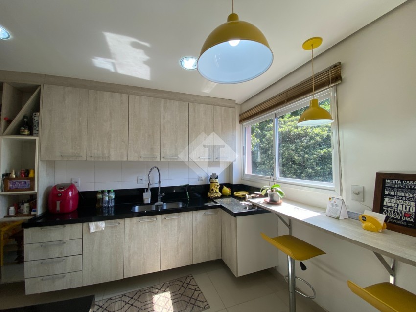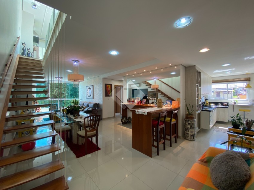 No piso inferior, encontram-se a sala de jantar, e a sala de estar, dois dormitórios, sendo uma suite. Banheiro social, e cozinha sob medida que fica no imóvel.