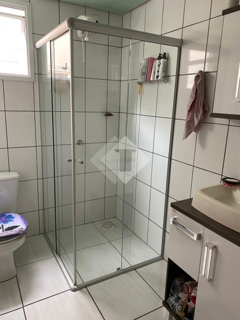 Apartamento funcional com 2 dormitórios, sala de estar, cozinha, banheiro, área de serviço e garagem para 1 carro. O imóvel possui piso cerâmico e aberturas de alumínio.