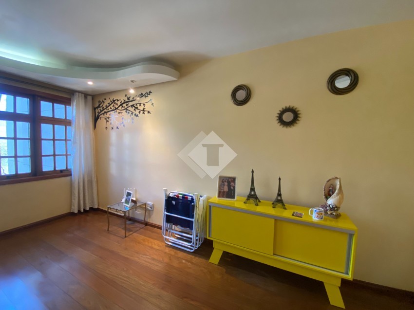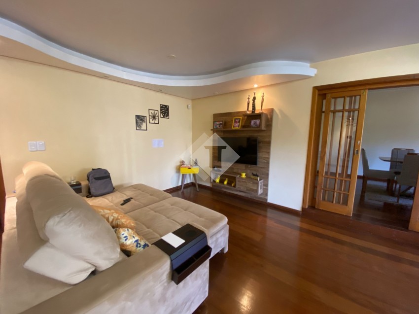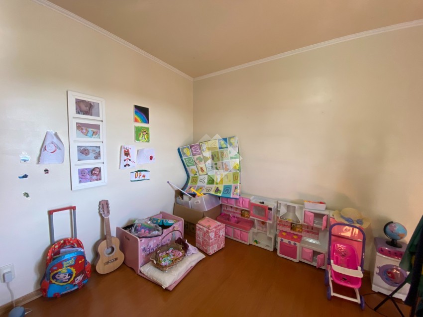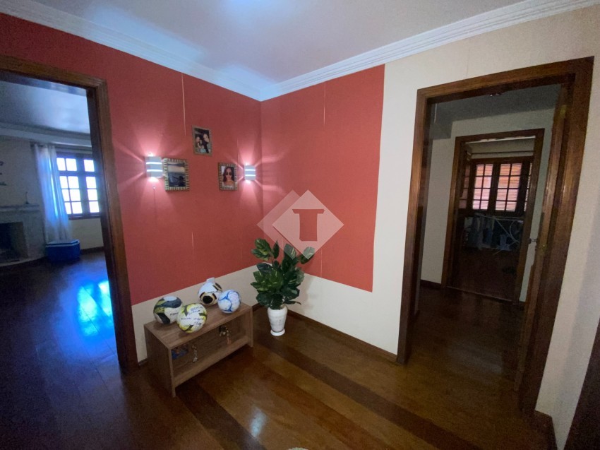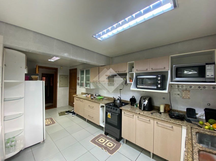 O imóvel conta com ampla cozinha, sala de jantar, sala de estar com lareira, sacada com churrasqueira, suíte + 2 dormitórios, dependência de empregada,01 box de garagem.