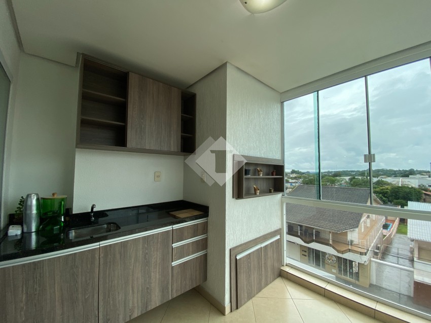 Apartamento central, com 01 suíte + 02 dormitórios, sala de estar, cozinha, lavanderia, sacada com churrasqueira, garagem para 01 carro.