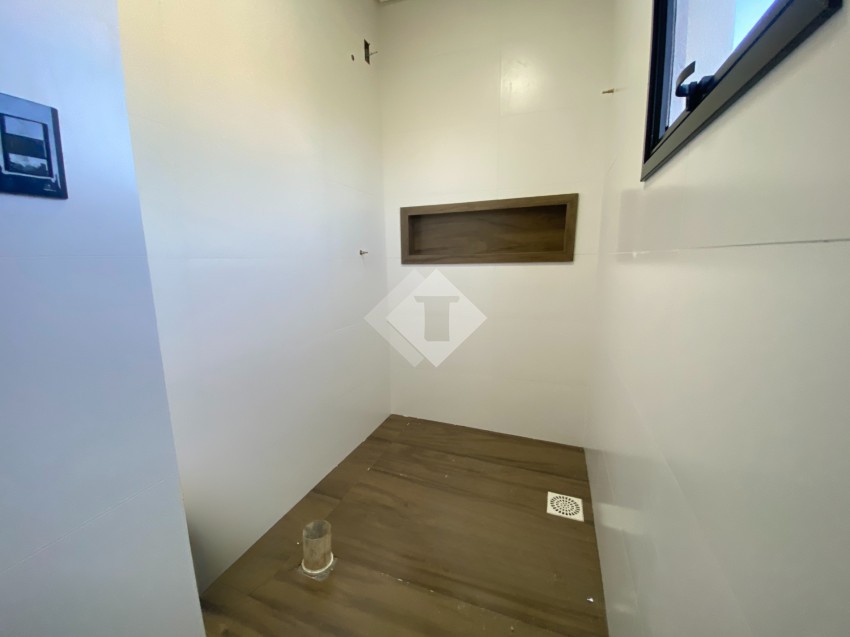 No pavimento inferior, o espaço é pensado para integração e convivência: a cozinha em conceito aberto conecta-se harmoniosamente com a sala de estar, criando um ambiente amplo e acolhedor, perfeito para receber amigos e familiares. Um lavabo garante praticidade ao dia a dia, enquanto a sala de TV oferece o aconchego ideal para momentos de descanso.