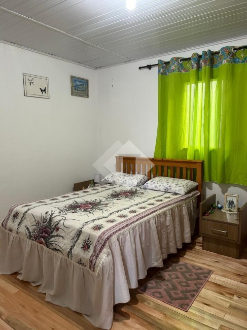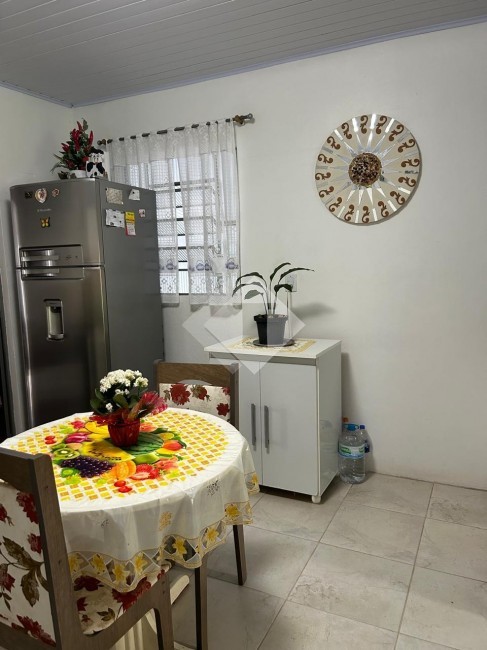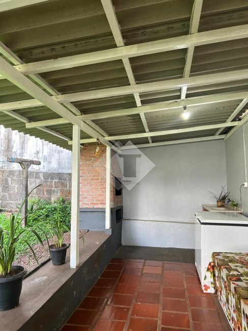 Casa de alvenaria com 03 dormitórios, sala de estar, sala de jantar, cozinha fechada, banheiros social e auxiliar, varanda, churrasqueira e garagem para dois carros.