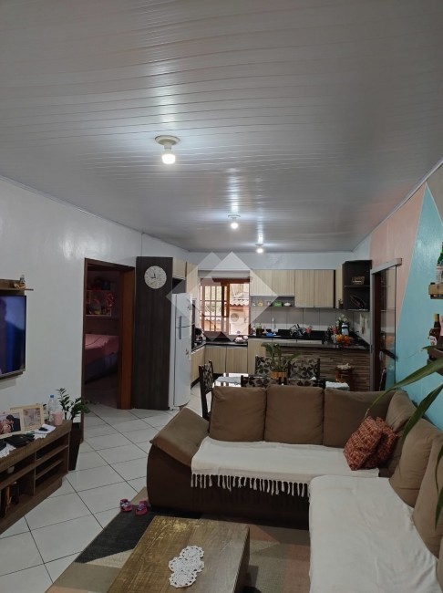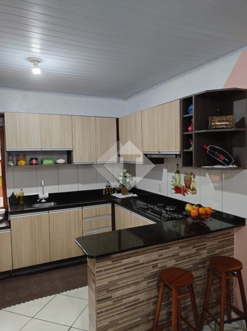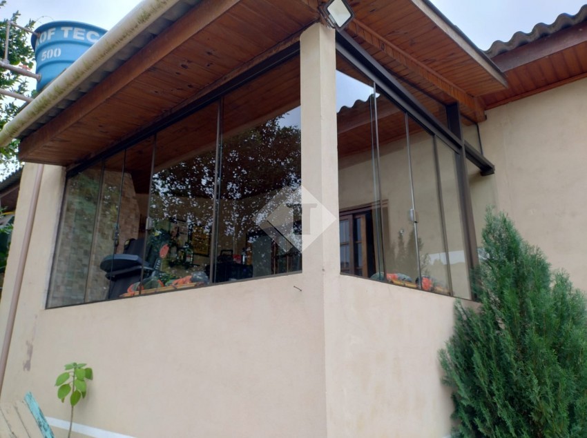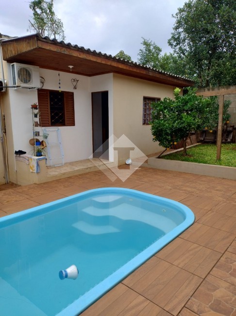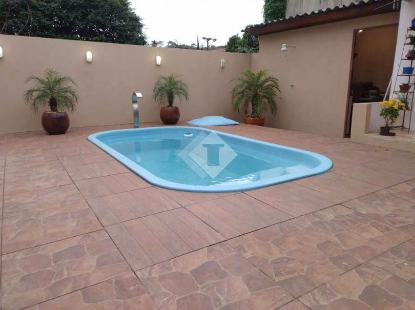 Casa com sala, cozinha planejada, três dormitórios, dois banheiros, duas vagas de garagem, piscina para momentos de lazer, energia solar, possui pátio na frente e fundos.