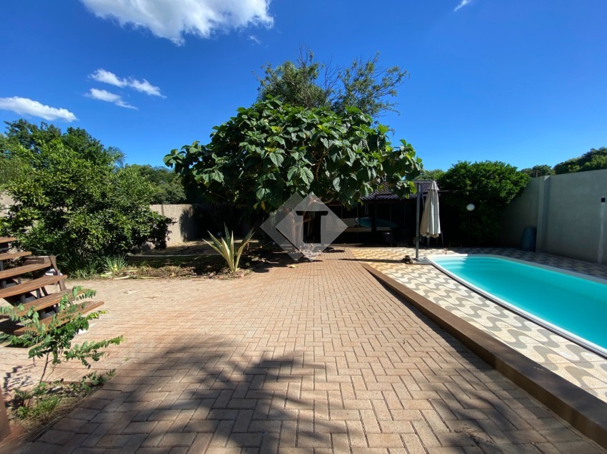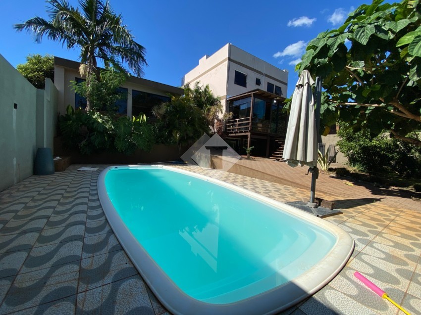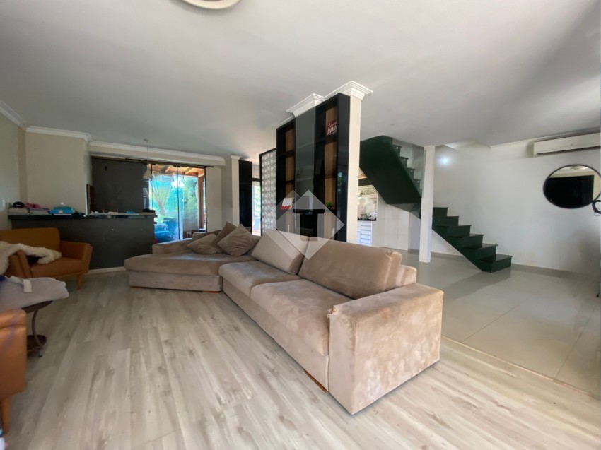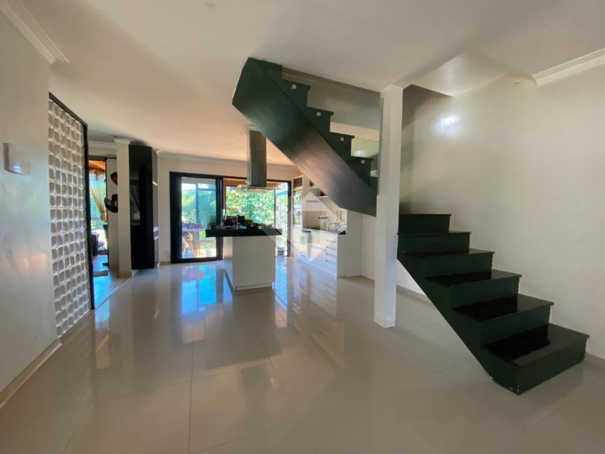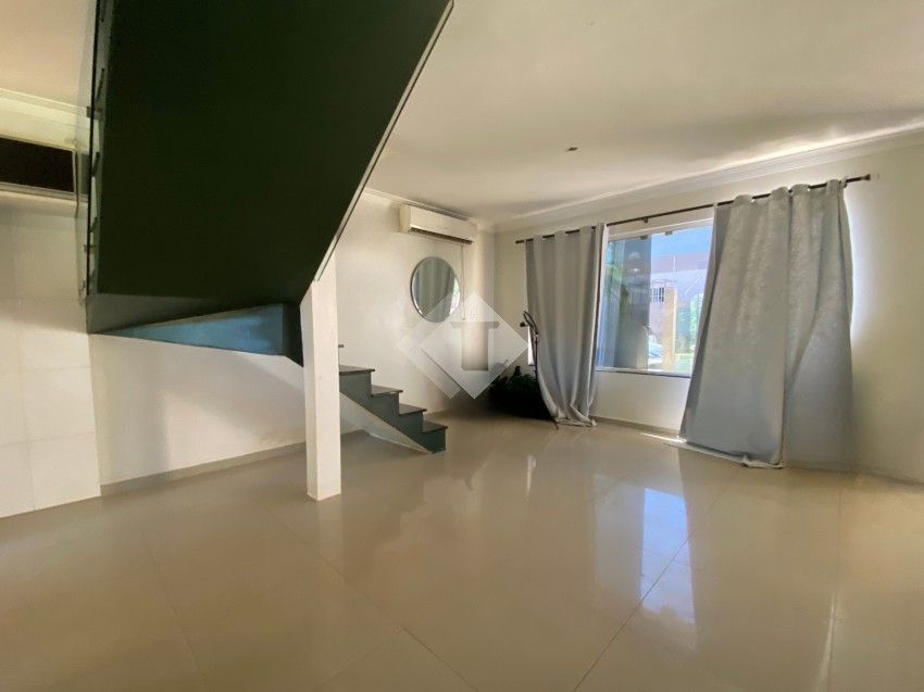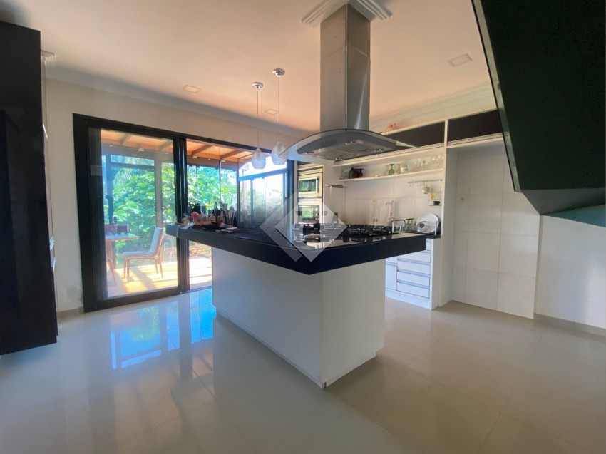 Esta casa possui no térreo uma ampla sala integrada com a cozinha com ilha e sala de jantar, além de uma varanda com uma bela vista. Além disto possui uma garagem para dois carros, um quiosque com churrasqueira e uma piscina.