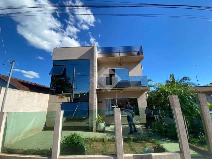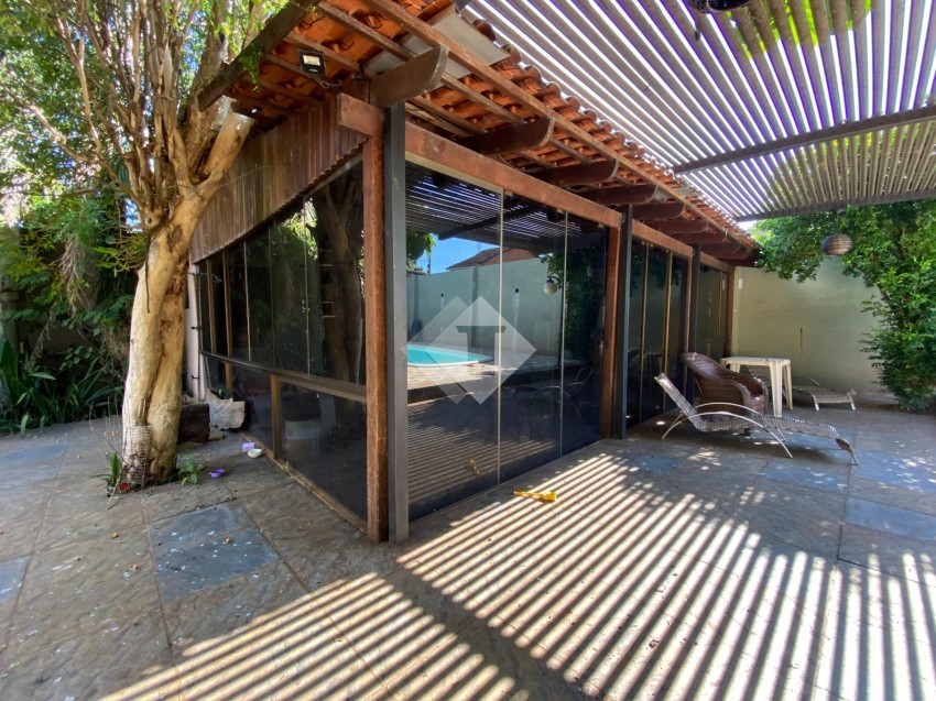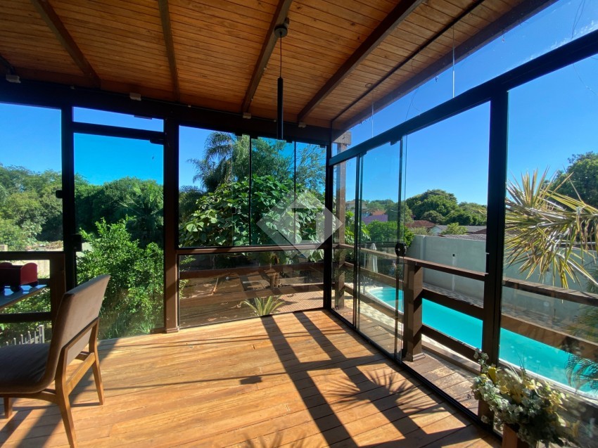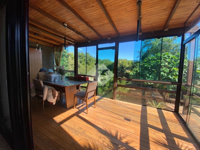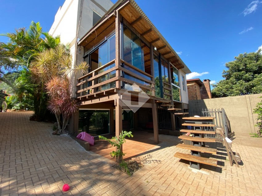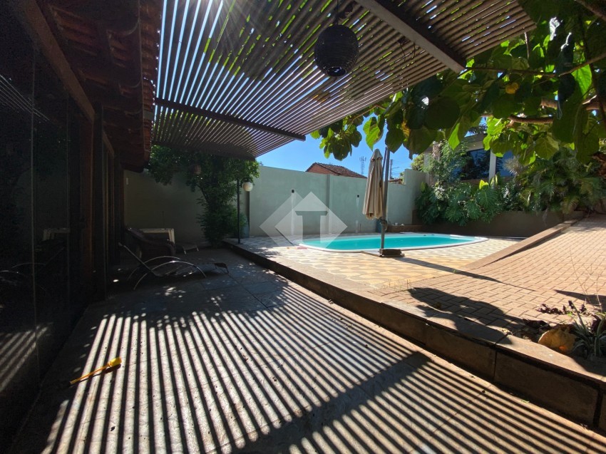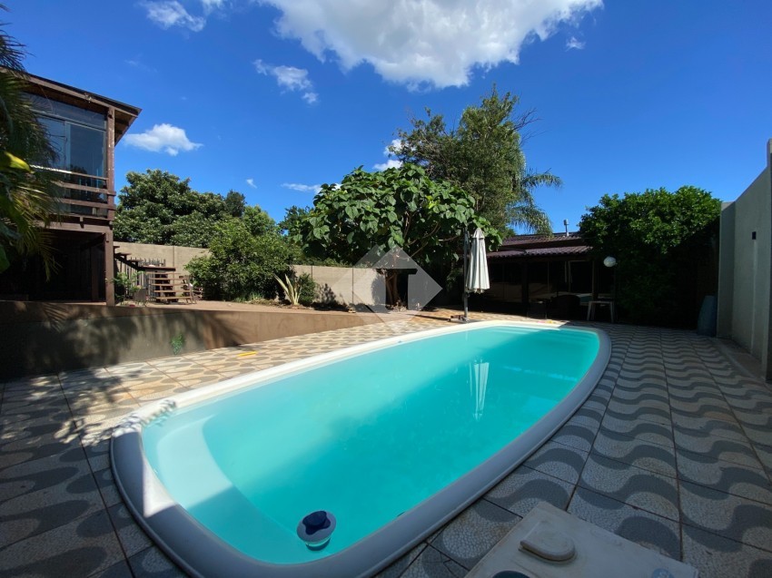 Esta casa possui no térreo uma ampla sala integrada com a cozinha com ilha e sala de jantar, além de uma varanda com uma bela vista. Além disto possui uma garagem para dois carros, um quiosque com churrasqueira e uma piscina.