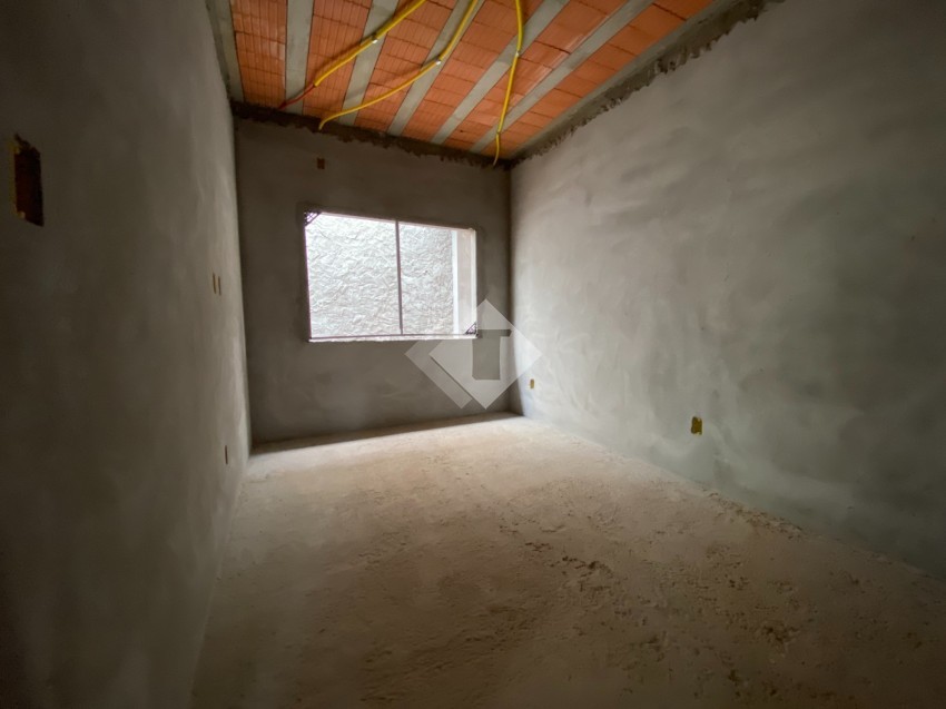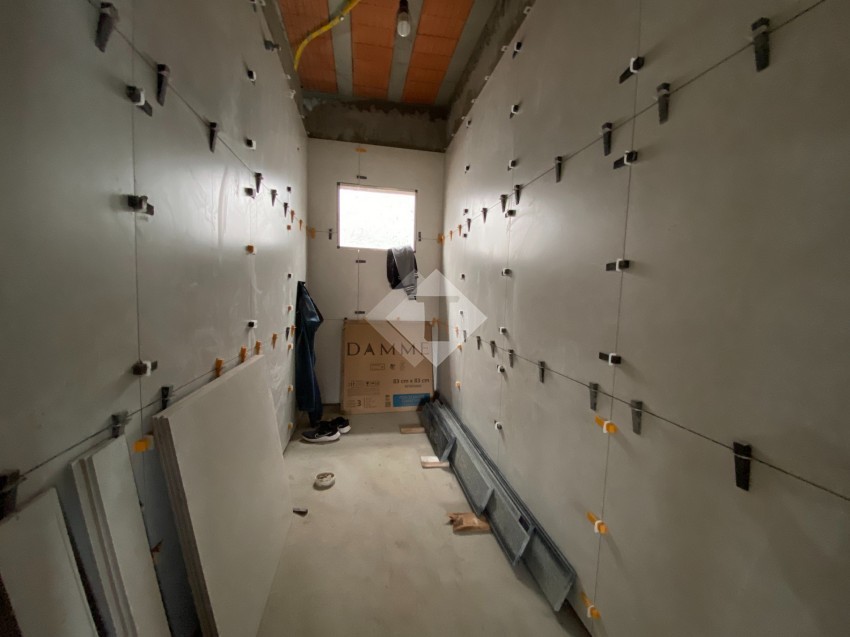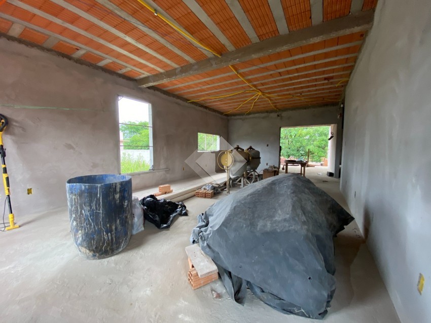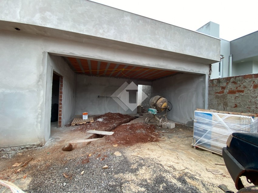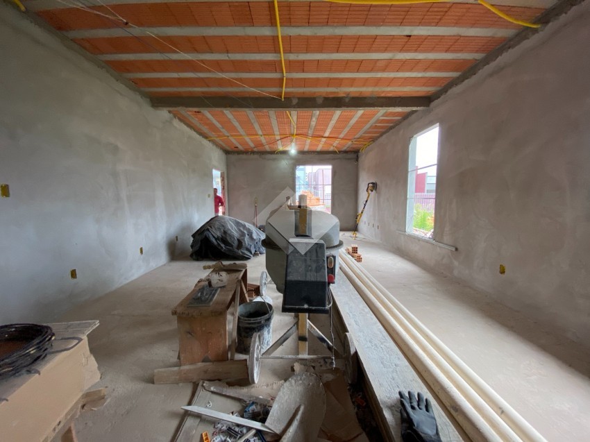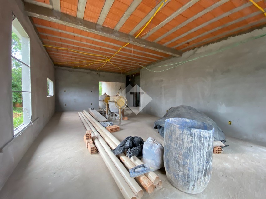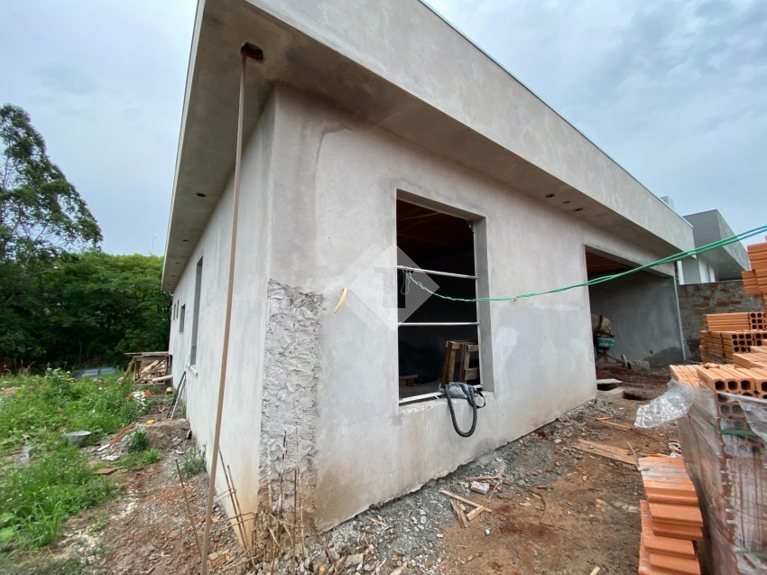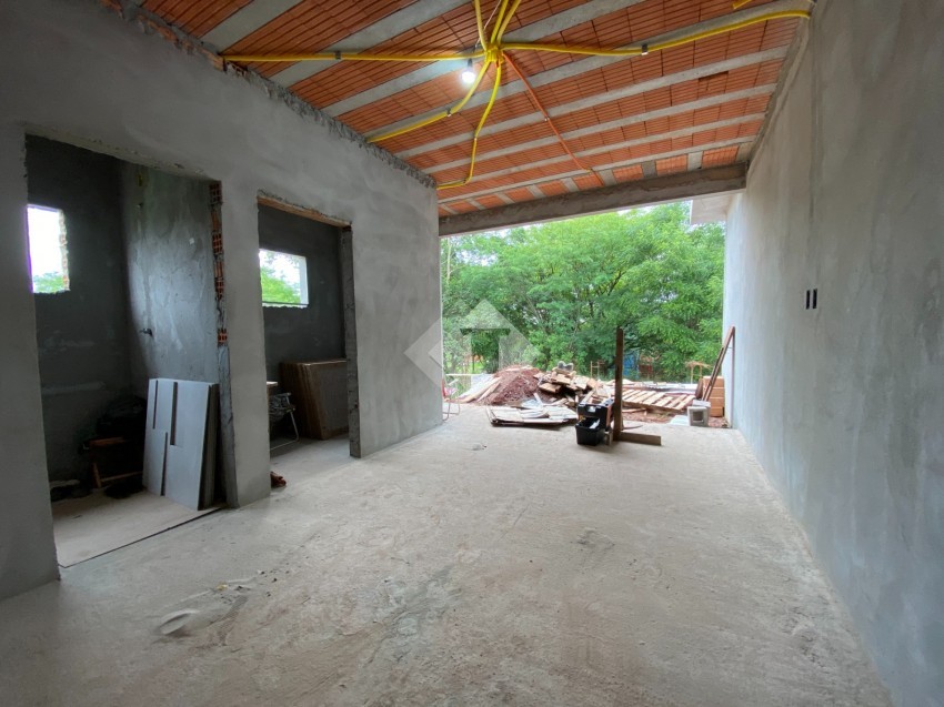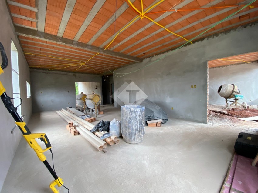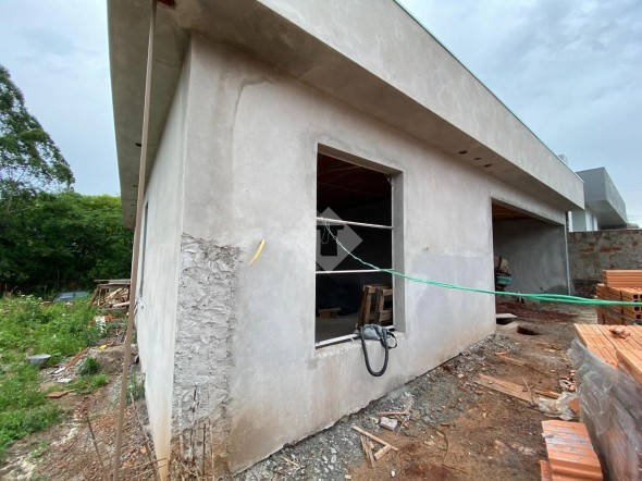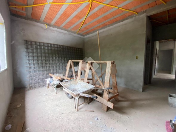 Casa de alvenaria, plana, em construção no Loteamento Imigrantes II.