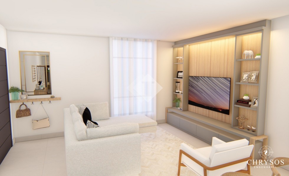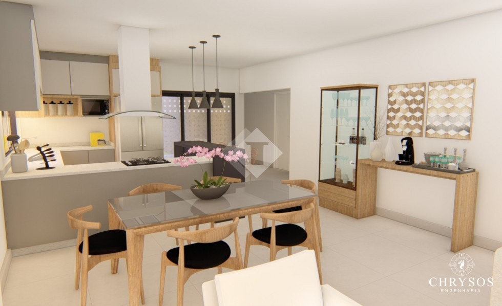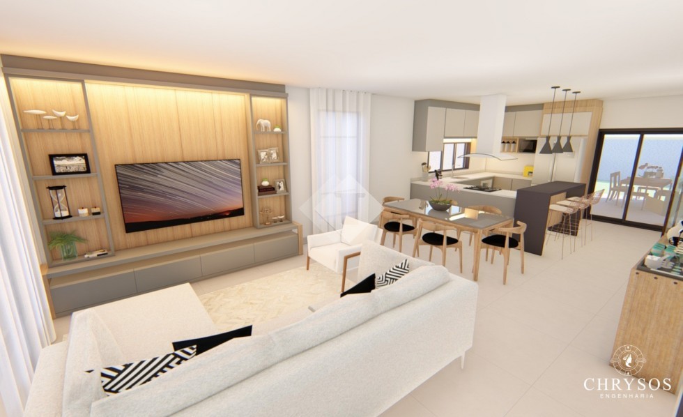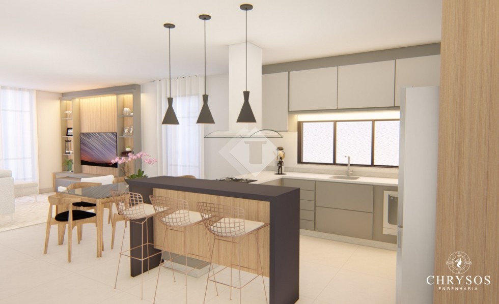 Suite + 02 dormitórios, cozinha americana, sala 02 ambientes, espaço gourmet, churrasqueira, banheiro social, lavabo, área de serviço separada e garagem para dois carros.