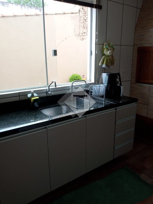 Excelente casa com 1 suíte + 2 dormitórios, 3 banheiros, lavabo, sala de estar e jantar, cozinha com móveis planejados, fogão à lenha e churrasqueira, possui laje e acabamento em gesso.