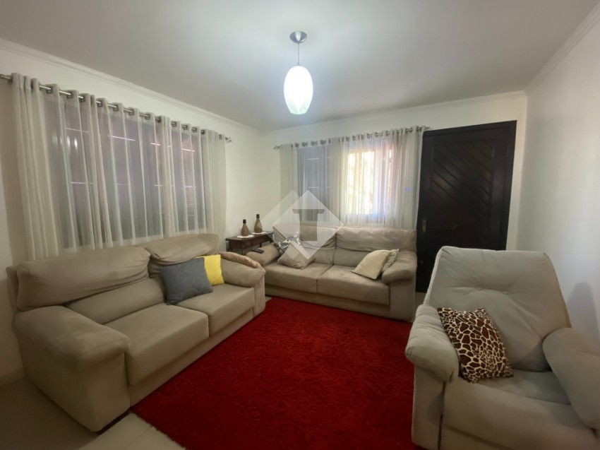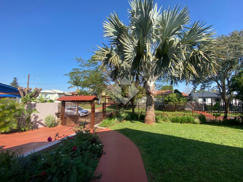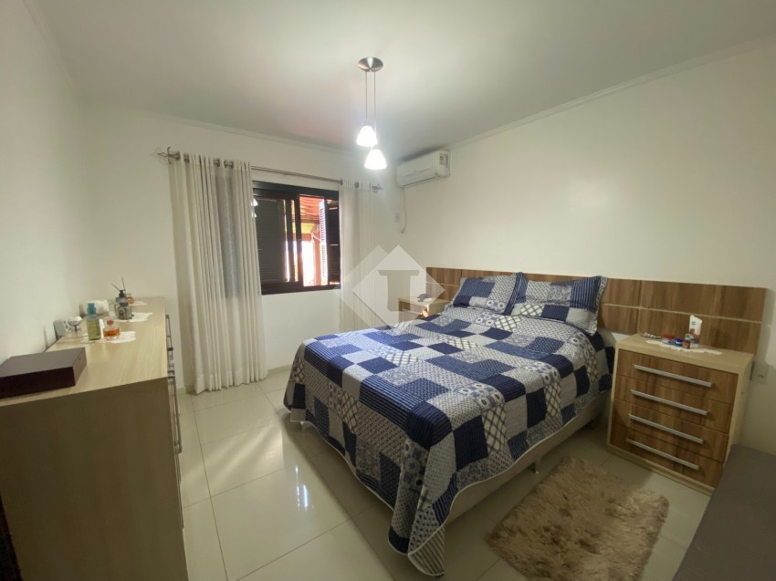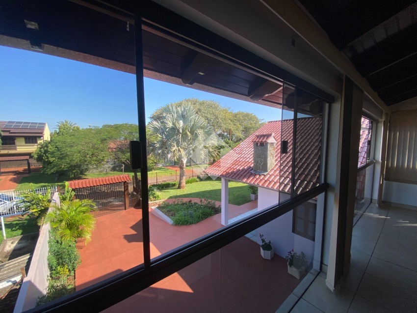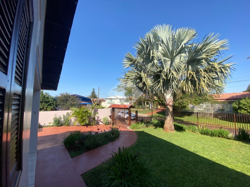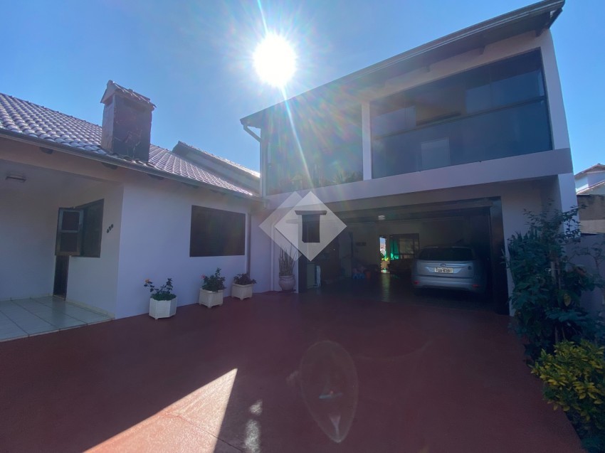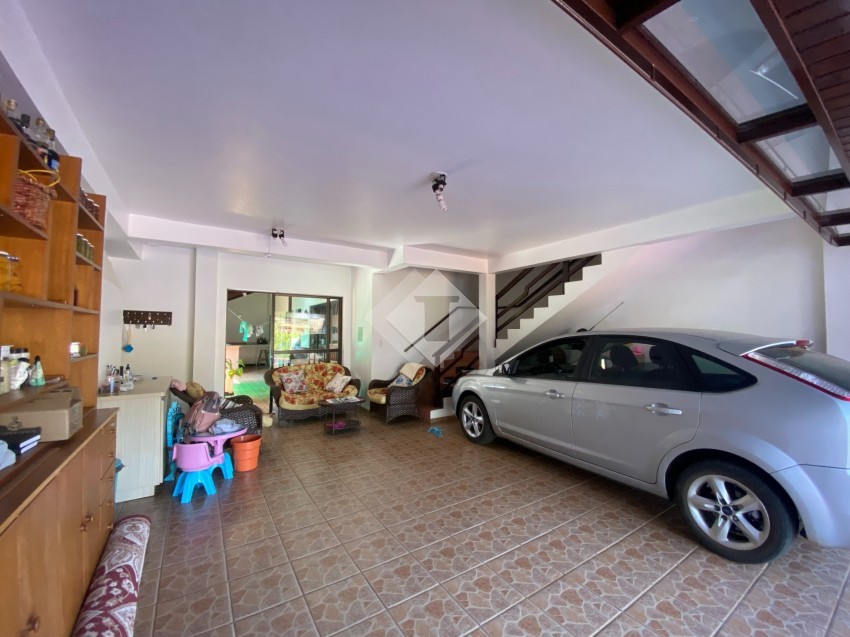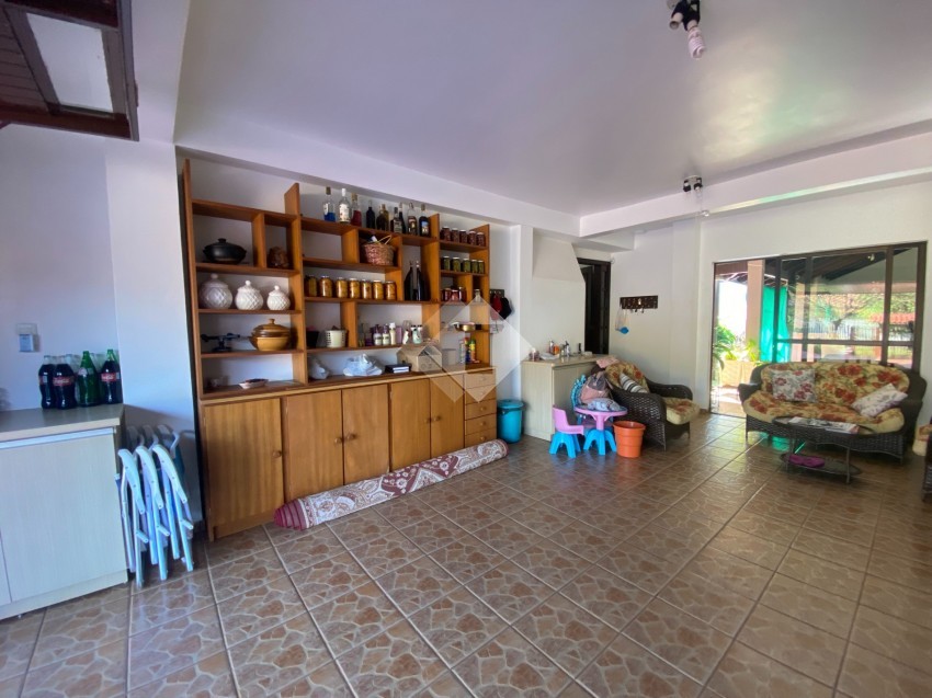 Esta residência possui uma suíte com closet e banheira, mais 03 dormitórios. Duas salas, cozinha ampla, garagem para 02 carros e um salão de festas com lareira na parte superior, com mais um cômodo e um banheiro. A casa também possui um jardim com árvores frutíferas e uma área de festas com churrasqueira e cozinha.