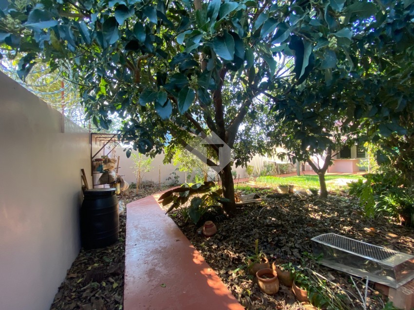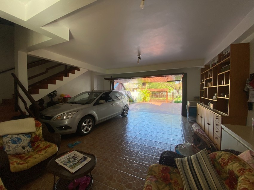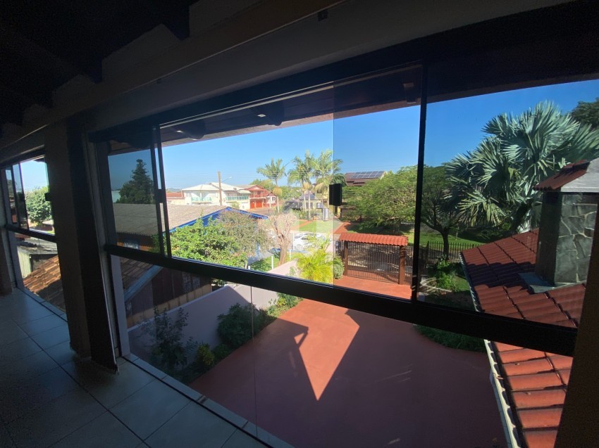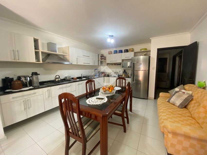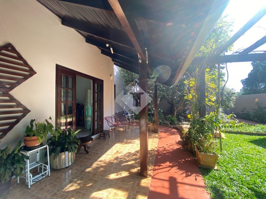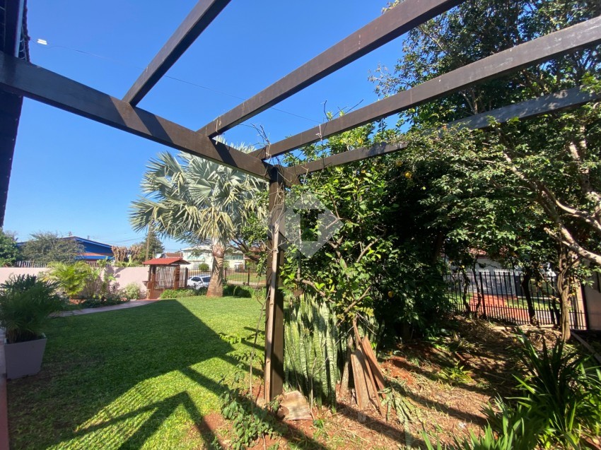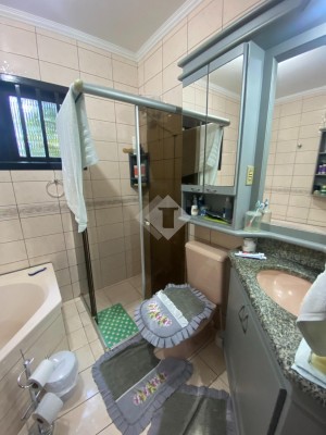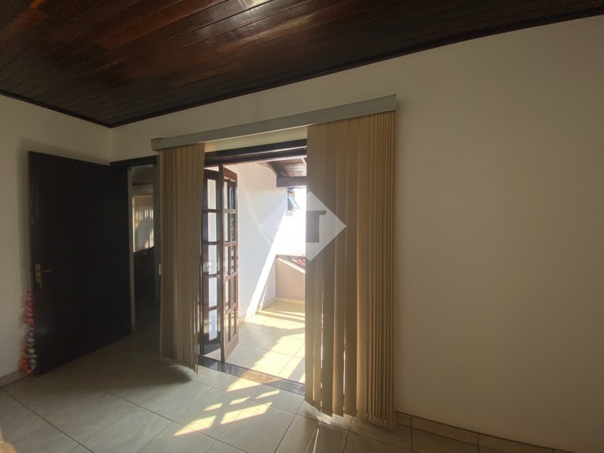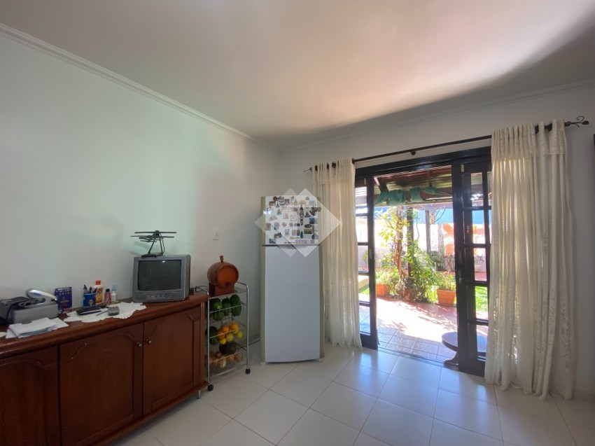 Esta residência possui uma suíte com closet e banheira, mais 03 dormitórios. Duas salas, cozinha ampla, garagem para 02 carros e um salão de festas com lareira na parte superior, com mais um cômodo e um banheiro. A casa também possui um jardim com árvores frutíferas e uma área de festas com churrasqueira e cozinha.