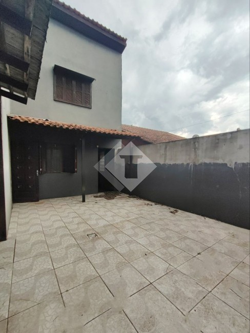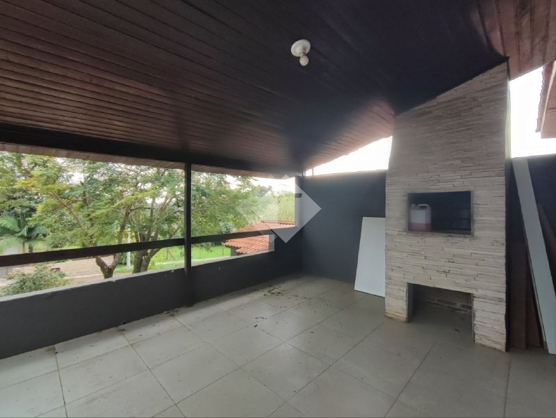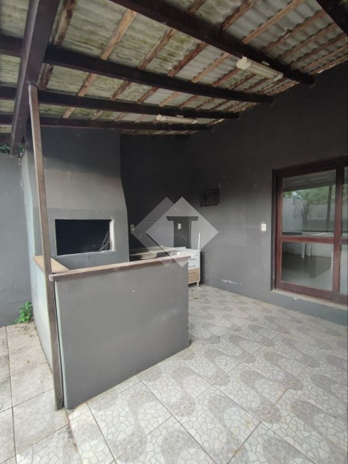 Nos fundos do pátio com uma área livre e lugar coberto com outra churrasqueira.