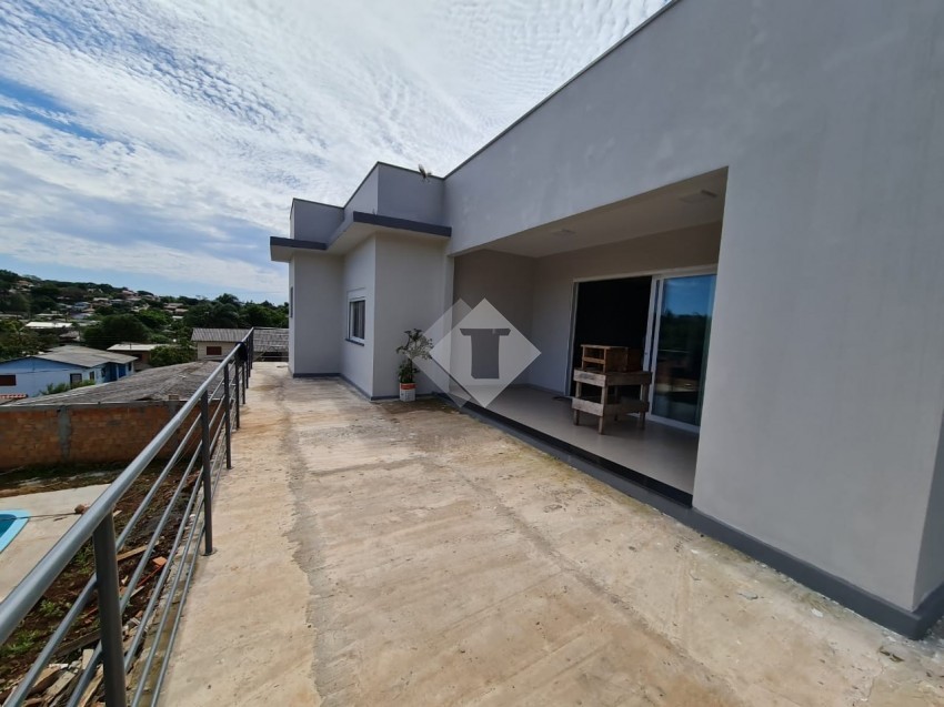 Excelente imóvel com uma suíte com closet, mais 3 dormitórios, banheiro social, sala de estar/jantar, cozinha com um móvel planejado, churrasqueira, lavanderia, garagem coberta para dois veículos, possui pátio na frente e nos fundos, piscina, conta com 15 painéis de energia solar, fiação de internet e tv com antena instalados.