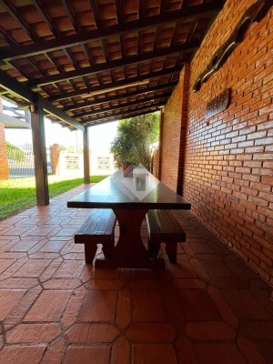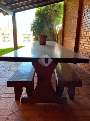O imóvel possui garagem para 2 carros lado a lado com churrasqueira e uma ampla varanda aberta que dá acesso ao espaço de festas com uma mega churrasqueira. Toda a estrutura da casa é feita de tijolos maciços, oferecendo segurança e conforto aos moradores.