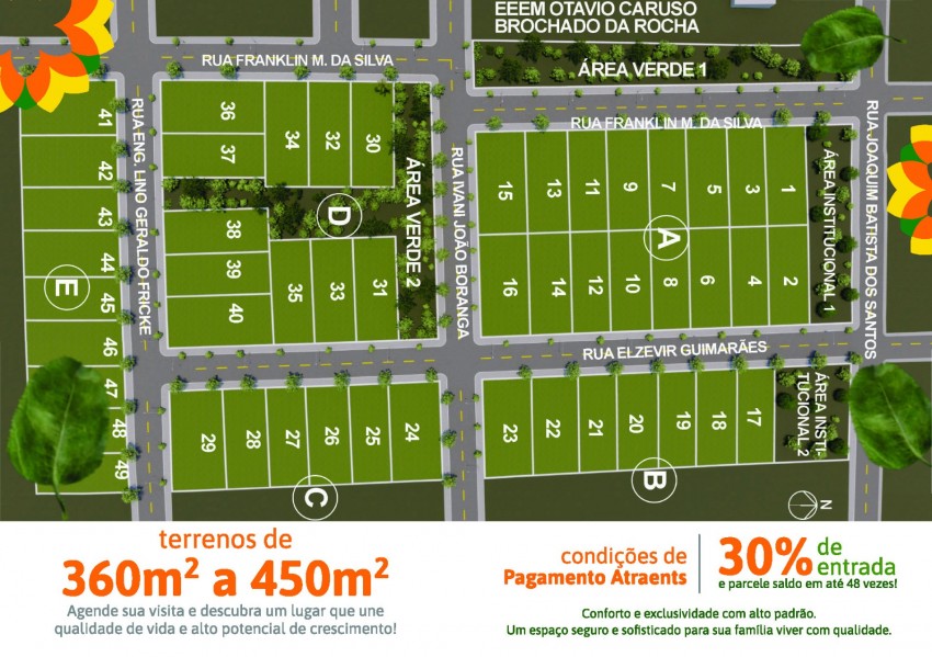 • Condições facilitadas: entrada de 30% e saldo parcelado em até 48 meses.