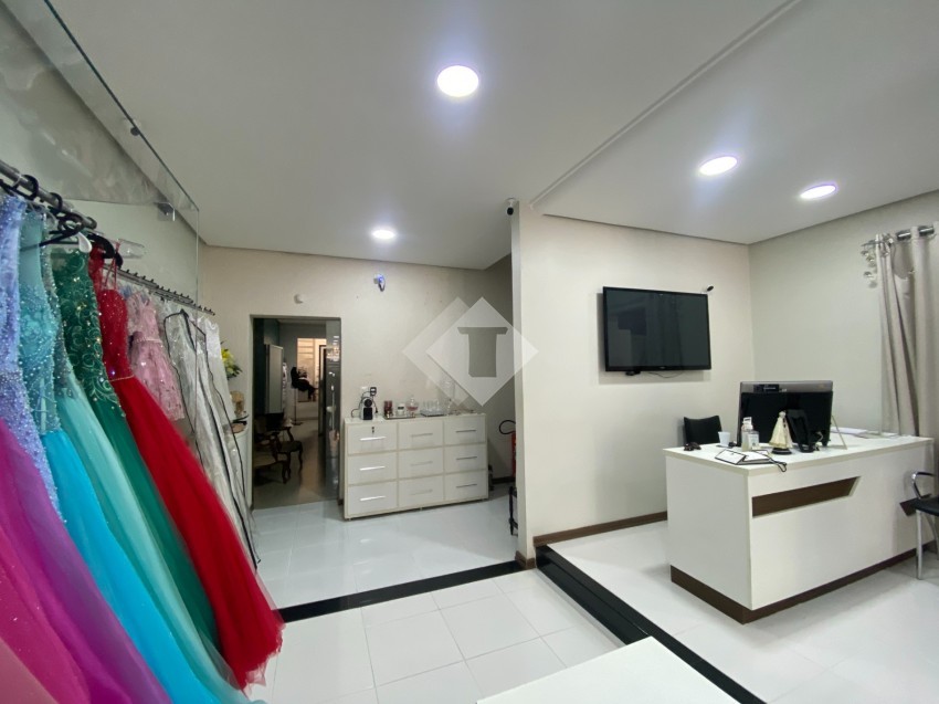 Equipado com 2 provadores, 2 banheiros e uma cozinha funcional.