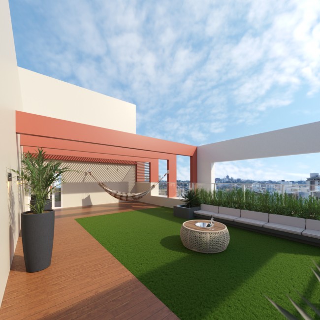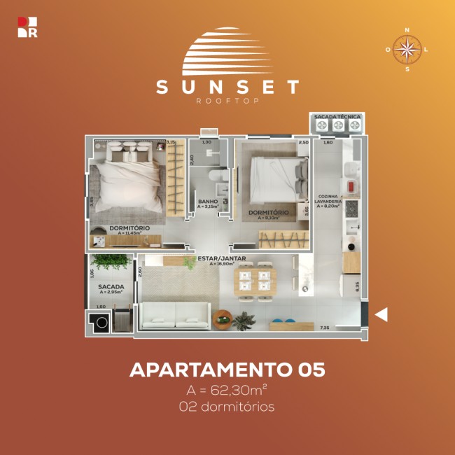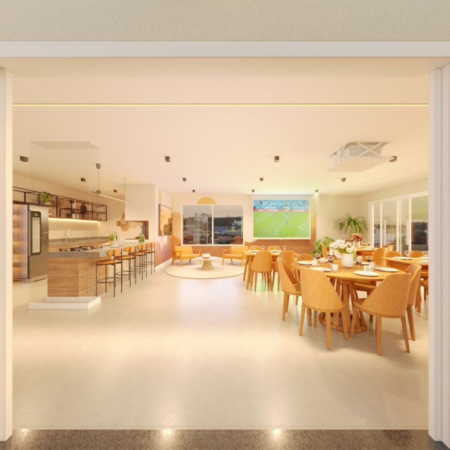 Possui 96m² de área privativa, uma copa, um banheiro e uma vaga privativa no prédio.