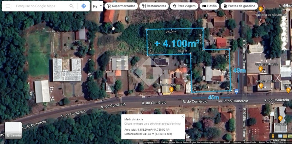 Excelente terreno, com frente para à Rua do Comércio, próximo a diversos estabelecimentos comerciais, com área total de 4132,26 m².