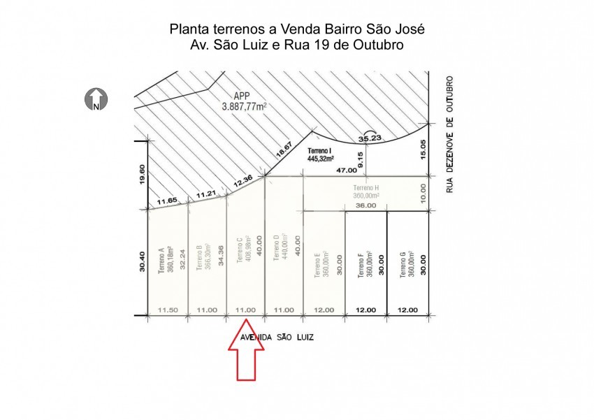 Área do Terreno : 11,00m de largura X 37,18m de comprimento.