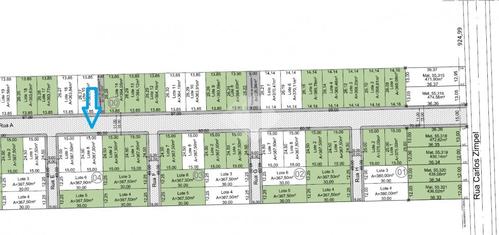 Área do Terreno : 15,00m de largura X 24,50m de comprimento.
