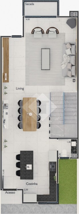 Cozinha integrada a sala de estar e jantar, lavabo e vaga para 02 veículos no andar térreo;