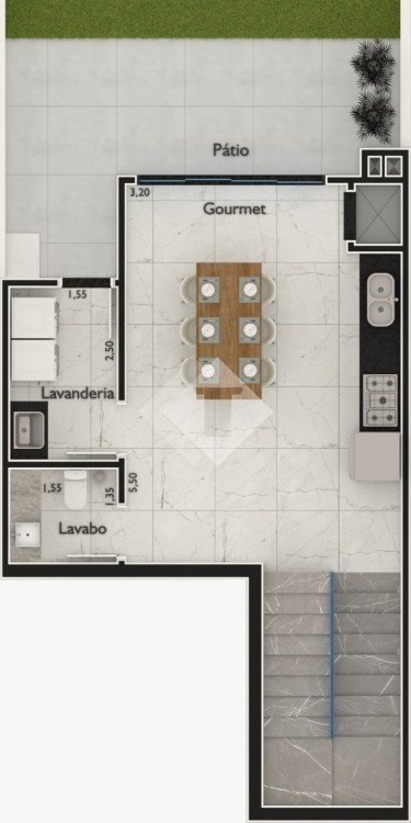 E uma área gourmet com lavabo, lavanderia e pátio no andar mais baixo;